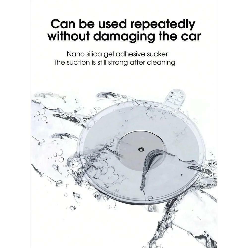 Possui uma ventosa forte com um adesivo de gel que se fixa com segurança ao painel ou à maioria das superfícies planas.